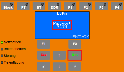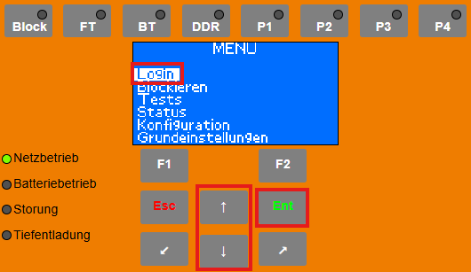 Die Taste „ENT“ drücken, um das Hauptmenü zu öffnen.Login auswählen