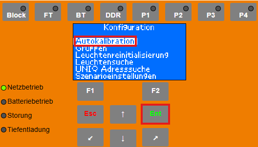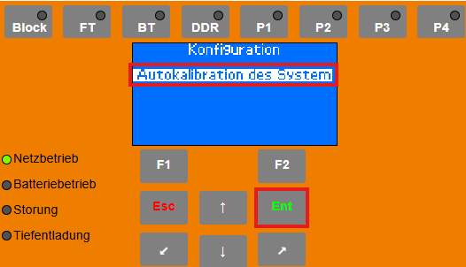 Im Konfigurationsmenü den Punkt „Autokalibration“ auswählen und mit „ENT“ bestätigen.Autokalibration des Systems starten