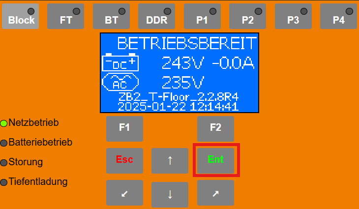 „ENT“ auf „Login“ klicken und mithilfe der Pfeiltasten das Installateurpasswort