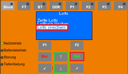den Menüpunkt „Logs“ navigieren und mit „ENT“ bestätigen