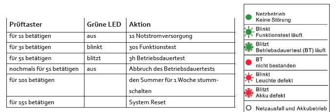 Die Statusanzeige kann nur nach Behebung des Fehlers, Wiederanlegen der Netzspannung und nach dem erneuten Durchführen des Funktionstests gelöscht werden.