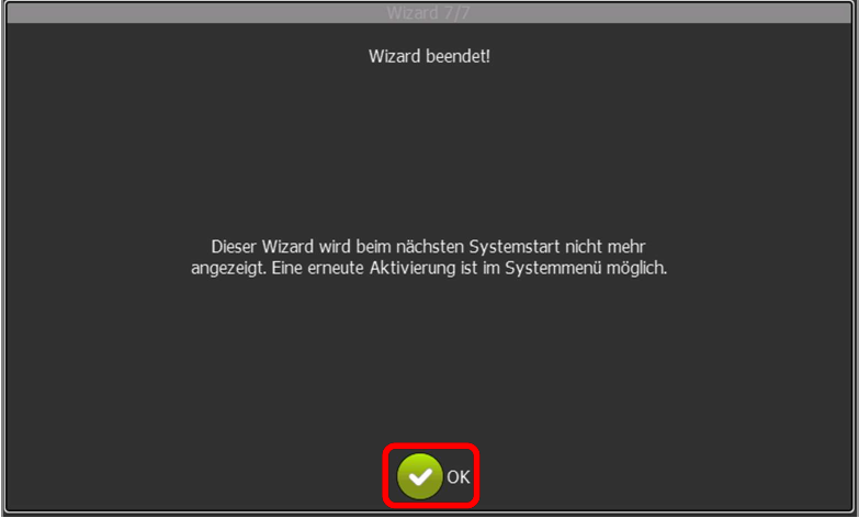 9. Wizard ist erfolgreich abgeschlossen und wird für den nächsten Systemstart deaktiviert.