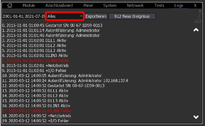 Wie werden die Log-Dateien bei der INSiLIA2 gesichert? 1. Öffnen der Systemlogs direkt über einen Klick über "Ereignisse"2. Filterung der gewünschten Ereignisse3. Zum Speichern der Ereignisse "Exportieren" auswählen.#Ereignisse #Logbuch #INSilLIA2 #Exportieren Tags Telefon-Support-KI-Senden Veröffentlicht 24.09.2025 06:48